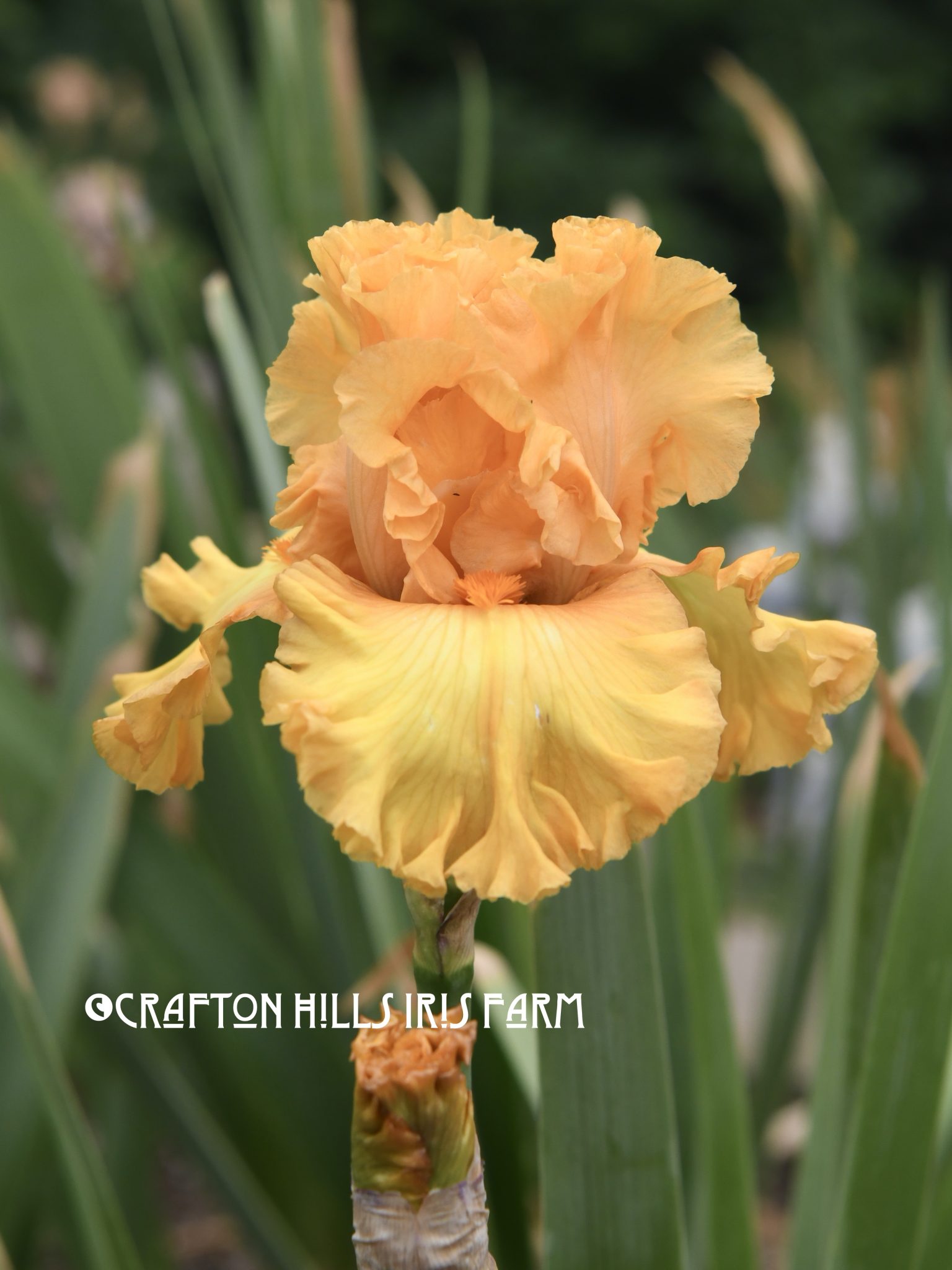 Bright and bold, Orange Temptation is new on the market and certainly can’t be overlooked! The standards are deep peach/orange, with slightly lighter falls, with brilliant orange beards. It stands 35” and blooms mid season. Big, ruffled and orange – It’s a must have! Honorable Mention, 2022; Award of Merit, 2024. (T. Johnson, 2020).